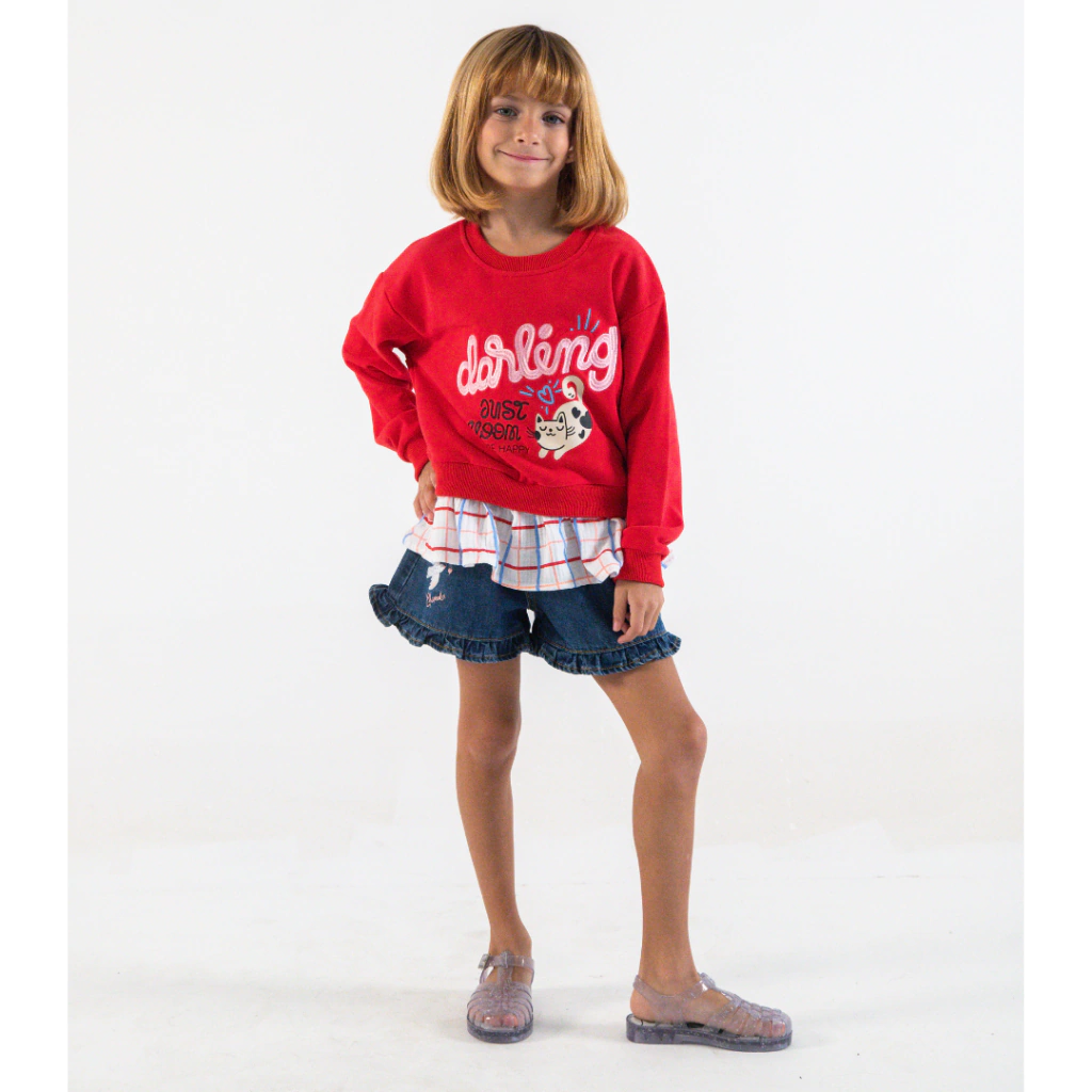 ¡El buzo Maika es puro amor y estilo! Un diseño romántico que mezcla el rústico liviano con el vuelo y la frescura de la gasa pañalera cuadrillé en el ruedo, creando un efecto blusón que eleva cualquier look casual. El frente se destaca con una estampa con bordado y en la espalda un detalle de etiqueta engomada. Es la prenda ideal para combinar con calzas, jeans o polleras, y darle un aire divertido al día a día.
