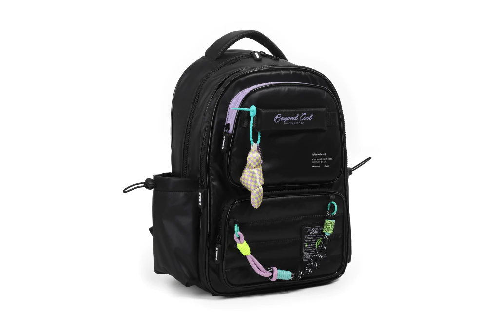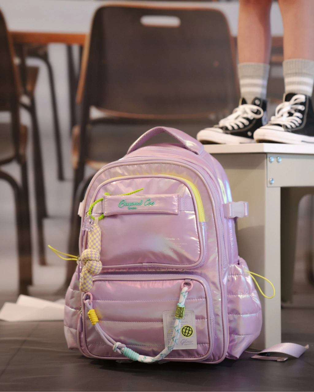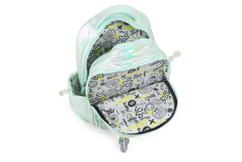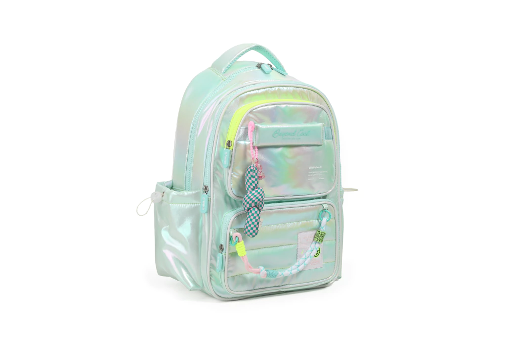 ¡El mix perfecto de color brillo y diversión! La mochila Shiny espalda tiene un bolsillo puffy acolchonado súper cool, decorado con un cordón colorido que la hace aún más divertida. Los cierres de colores y los charms colgantes de osito y cuadros le dan un look único, mientras que sus materiales tornasolados le dan un efecto mágico. Perfecta para llevar cuadernos, libros y todo lo que necesites, siempre con un toque trendy y diferente.
